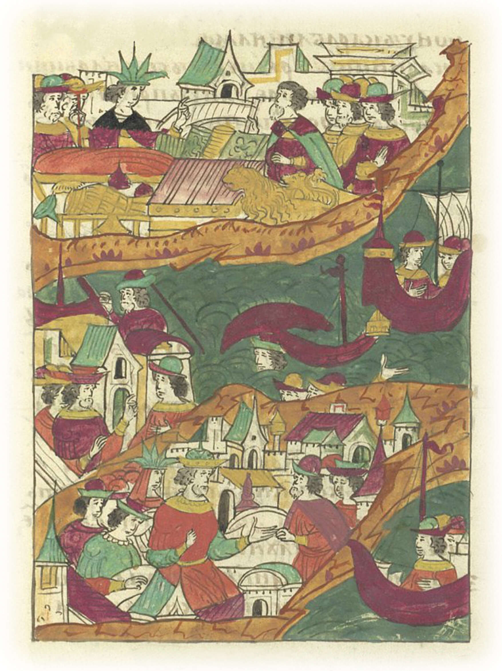 Пришел посланник царя и великого князя Иосиф Непея. В том же месяце вернулся посланник царя и великого князя Иосиф Непея от Филиппа, короля Испанского и Английского, и от королевы Марии. А рассказал Непея, что по пути в Английскую землю разбило их корабли на море. Посланник короля Рыцерт с товарищами утонул в море, а их прибило к берегу Штоцкого* королевства, и оттуда его отпустили в Английскую землю, и король Филипп принял дары царя и великого князя с великою любовью и честью и обратно к царю и великому князю отпустил. И написали с ним король Филипп и королева Мария с великою любовною почестью, и в подарок прислали царю и великому князю живых льва и львицу, а король прислал свой полный доспех, скорлаты** и многие атласы, и Непее в своем жаловании преподнесли большой подарок, а гостям царя и великого князя открыли свободный путь и дали им двор в своем большом городе Лунском***, и разрешили торговать без всяких пошлин. И отпустил король с Непеем многих мастеров, докторов и искателей золота и серебра, и делателей, и многих других мастеров, которые пришли вместе с Непеем. * Шотландия; ** сорт сукна, изготовлявшегося только во Франции, первоначально только алого цвета; *** Лондон.