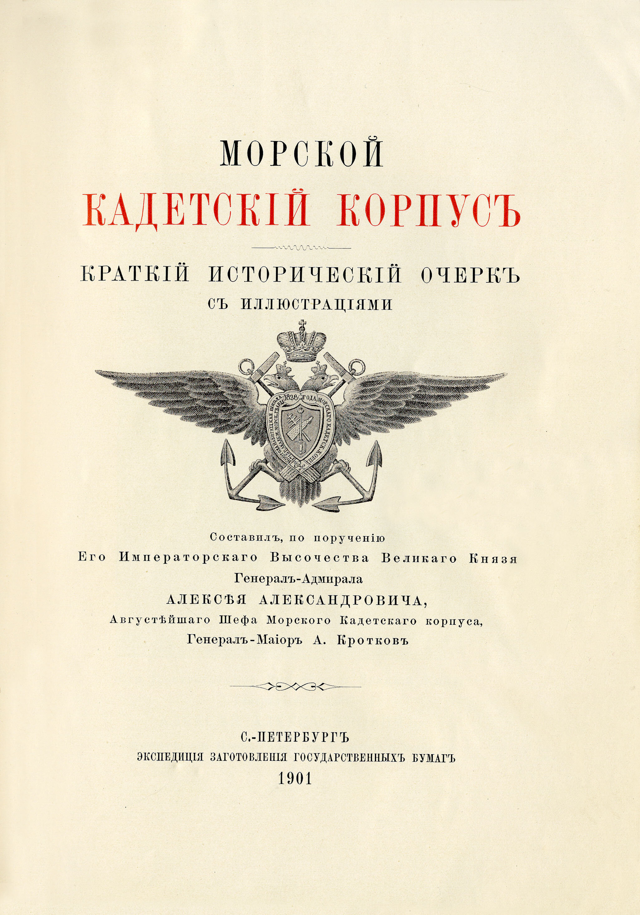 Иллюстрация с титульного листа издания: Кротков Аполлон Семенович. Морской кадетский корпус. Краткий исторический очерк. — СПб.: Экспедиция Заготовления Государственных Бумаг, 1901.
