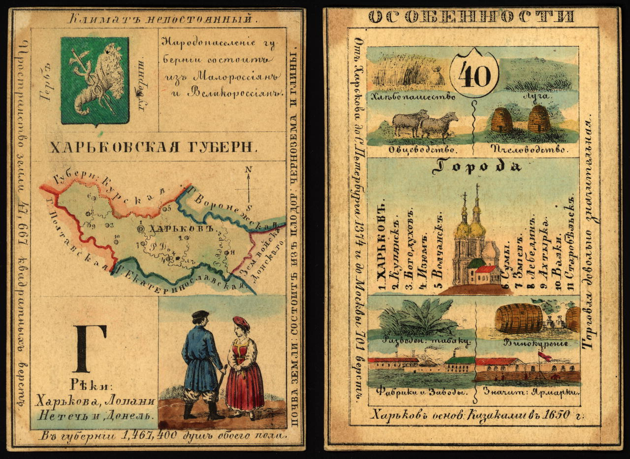 Харьковская губерния - В 1765 г. Слобожанщина получила официальное название Слободско-Украинской губернии с центром в Харькове. 25 апреля 1780 был подписан Указ императрицы Екатерины II «Об учреждении Харьковской Губернии и о составлении оной из 15 уездов». В 1796 наместничества были упразднены, в связи с чем на территории Харьковского наместничества было восстановлена Слободско-Украинская губерния, разделенная на 10 уездов. В 1835 Слободско-Украинская губерния была повторно упразднена и на ее месте была создана Харьковская губерния, которая состояла из 11 уездов. Окончательно административное деление сформировалось к 1856 году, когда в состав губернии входило 13 уездов. В Харькове были сосредоточены судебная власть и военно-окружное управление для Харьковской, Курской, Воронежской, Орловской, Екатеринославской и Тамбовской губерний.