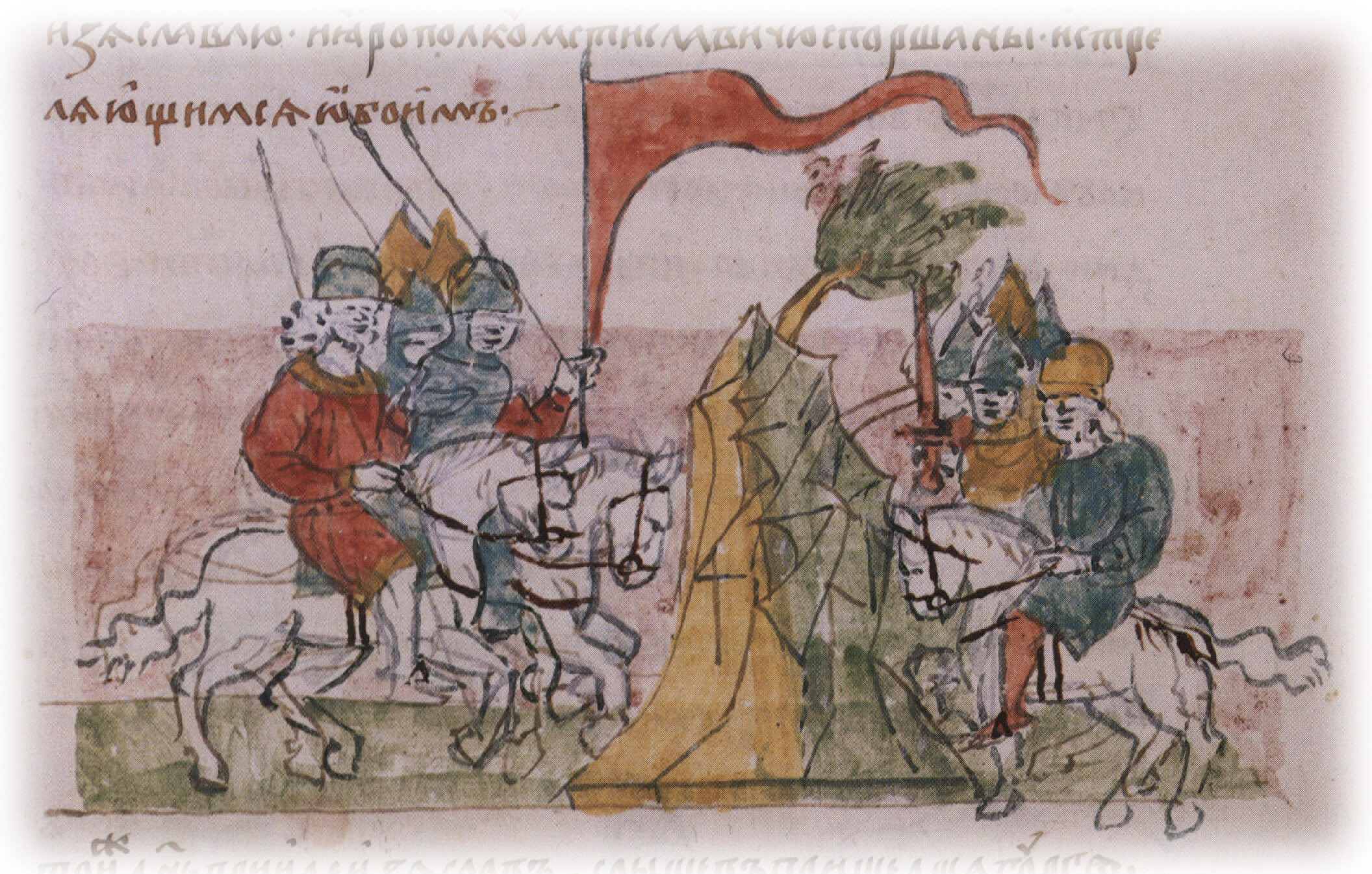 И совокупи вой и дружыну свою и половци, и надеяся на Бога и поидеть июля 24. И пришедшю ему ко Вьяханю, и прииде к немо Олгович и Всеволодич оба Святослава..