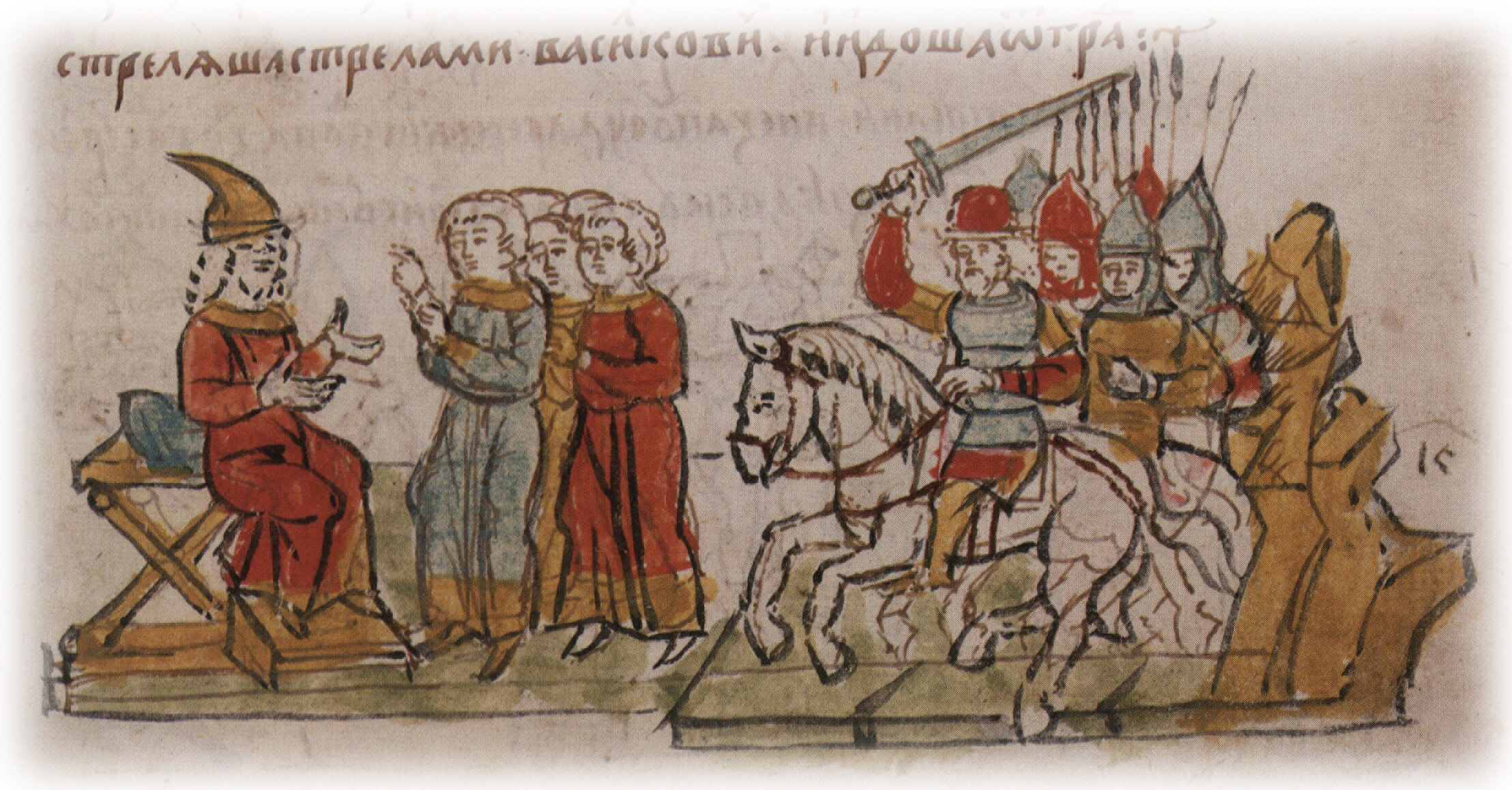 "Гражане же, слышавше, созваша вече, и реша Давыдови людие: «Выдай мужи сия...... И рече Давыд: «Нету их зде», бе бо послал к Луцку".
