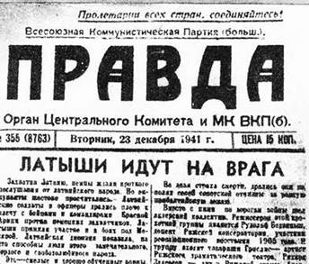 Статья «Латыши идут на врага» в газете «Правда» от 23 декабря 1941 г.