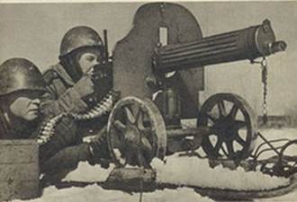 Пулеметчица16-й Литовской стрелковой дивизии Е. Сергеевайте в бою под Невелем.1943 г.