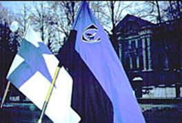 Флаг «сине-черных» возле посольства России в Хельсинки