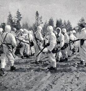 Финские пехотинцы на реке Свирь. Апрель 1942 г.