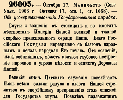 26. 1905 год. (17 октября). 803. Манифест. Об усовершенствовании Государственного порядка