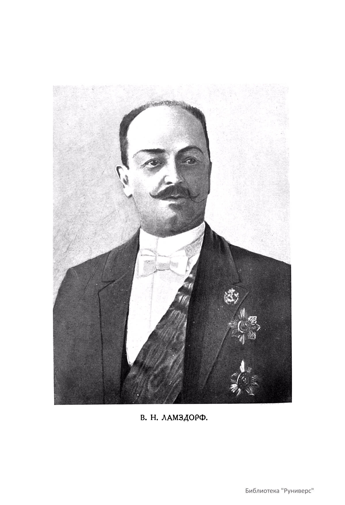 Ламсдорф Владимир Николаевич (1845 – 1907), русский государственный деятель. В 1900 г. – назначен управляющим министерством иностранных дел и затем министром.