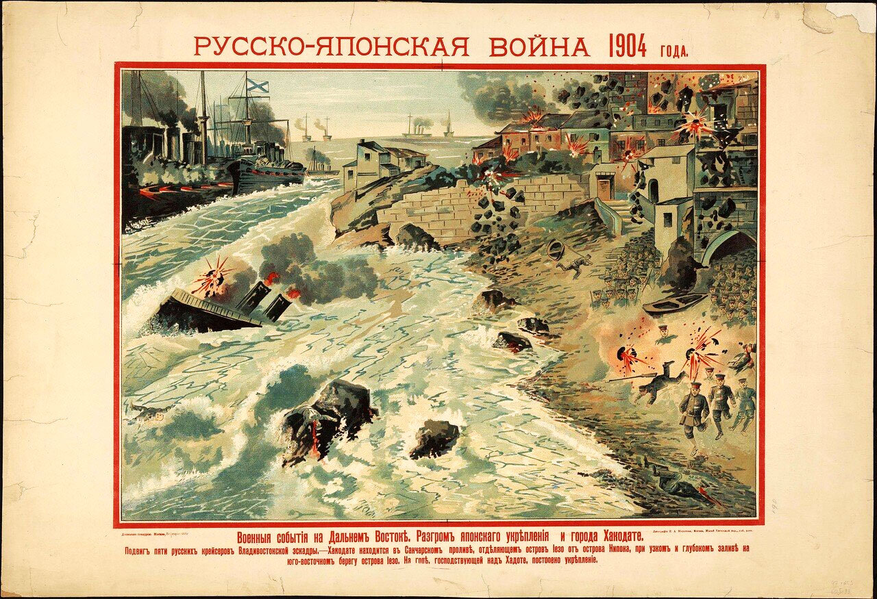Русские крейсеры разгромили японские укрепления (лубок)