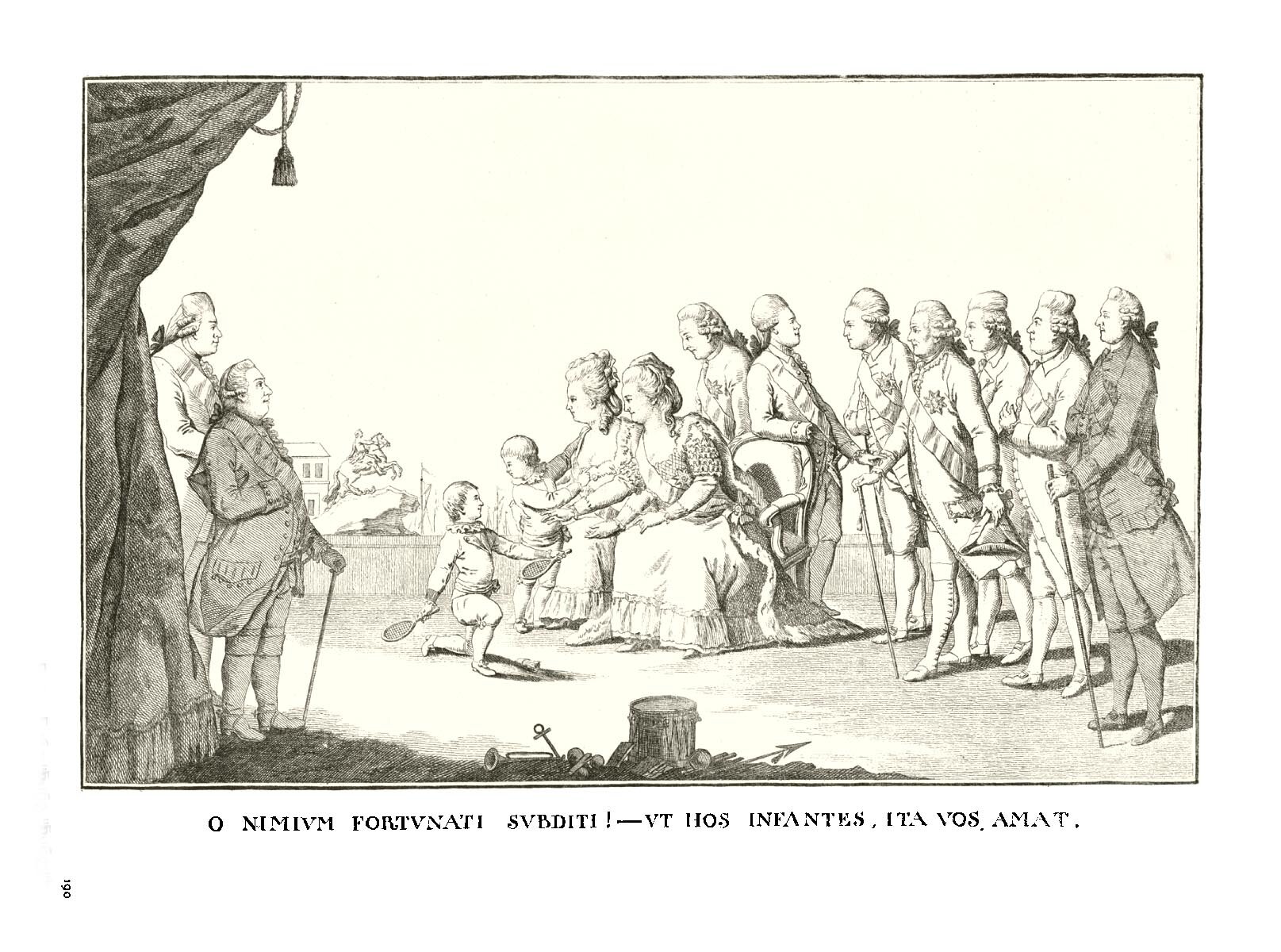 O nimium fortunate subditi! — ut hos infanti, ita vos amat (О, подданные, отменно-счастливые: она вас любит как этих детей)