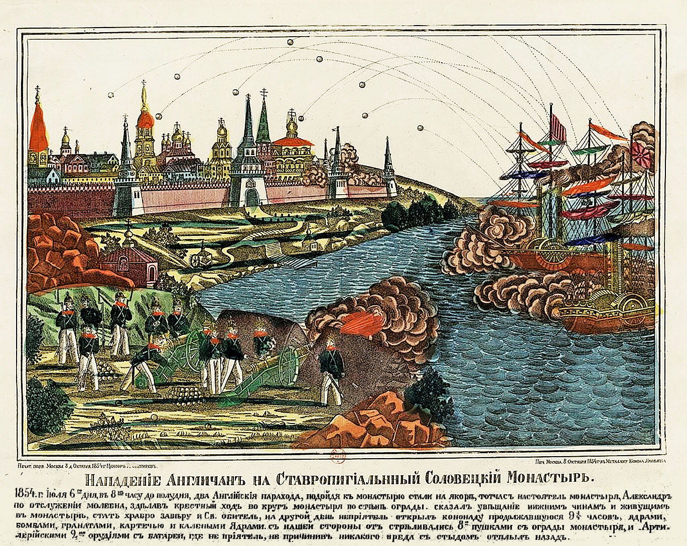 Нападение англичан на ставропигиальный Соловецкий монастырь (лубок)