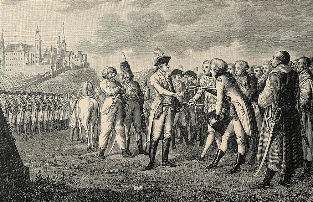 Сдача Краковского замка. Французские офицеры отдают А.В. Суворову шпаги