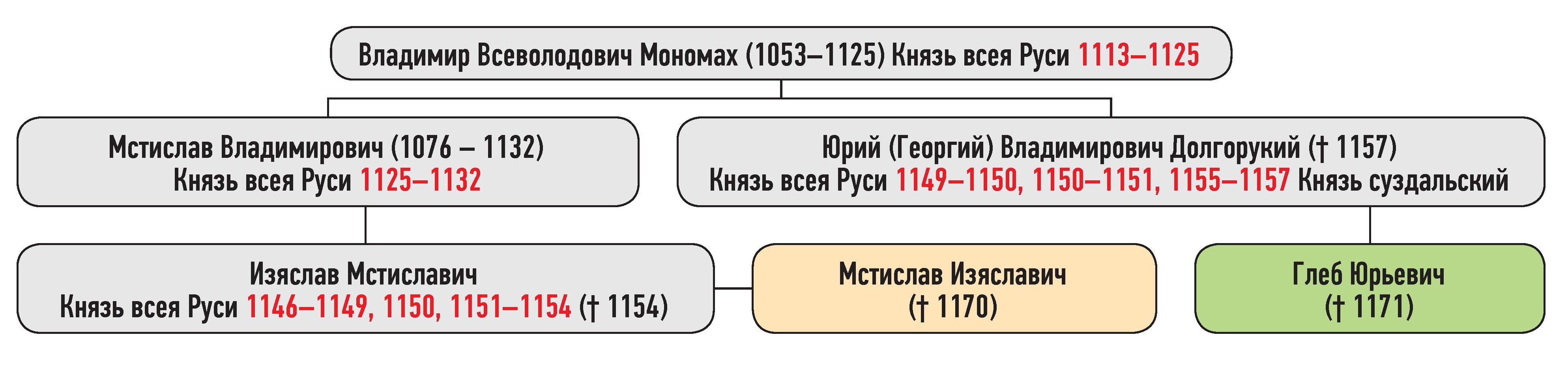 Глеб Юрьевич — сын Юрия Владимировича, Мстислав Изяславич — сын Изяслава Мстиславича
