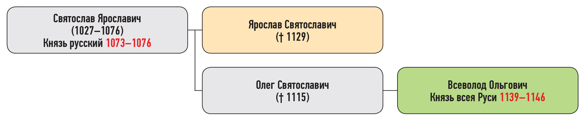 Генеалогическая схема к усобицы Всеволода Ольговича и Ярослава Святославича в 1127 г.