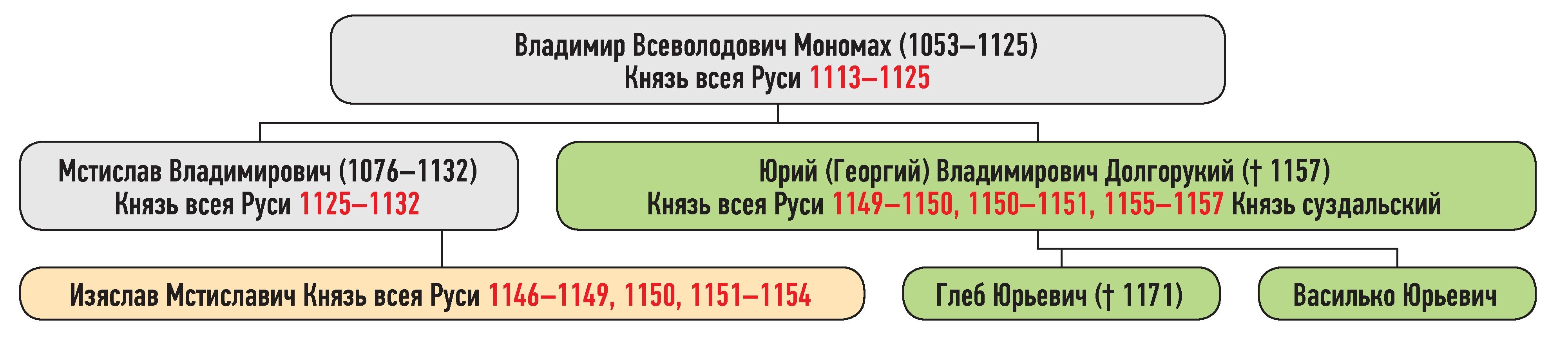 Генеалогическая схема к усобице Юрия Владимировича и Изяслава Мстиславича в 1154 г.
