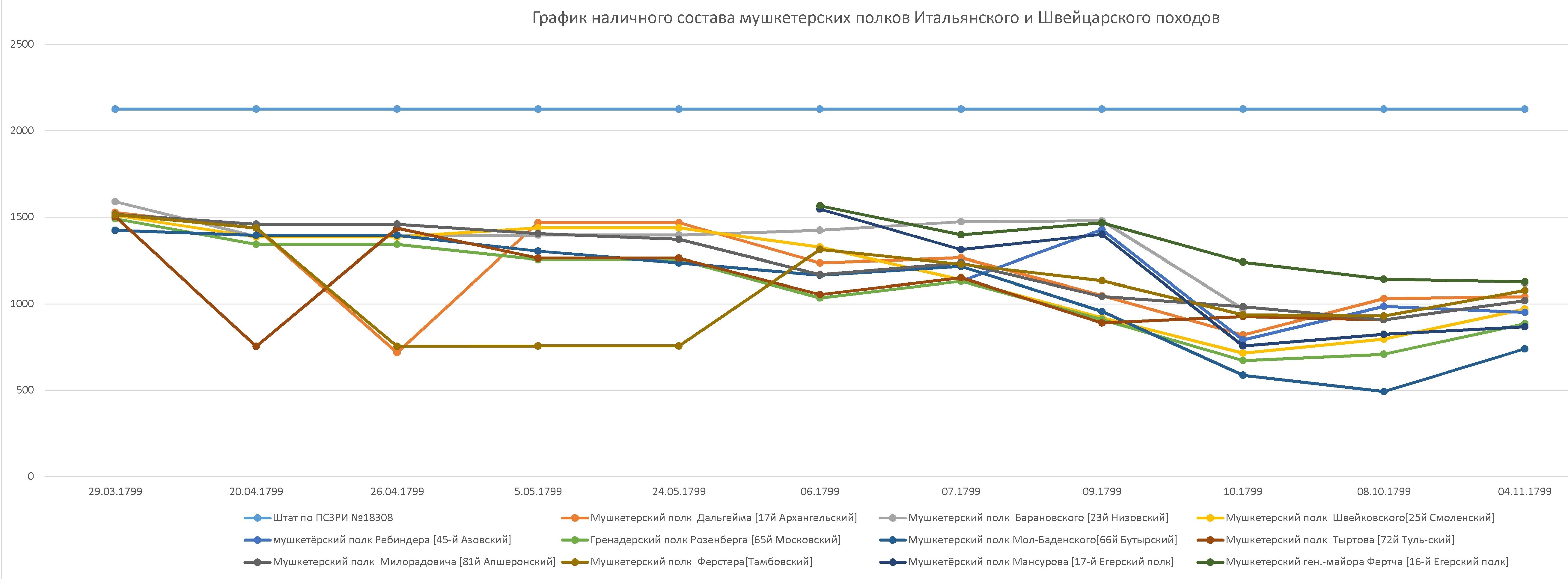 График наличного состава мушкетерских полков Итальянского и Швейцарского походов русской армии