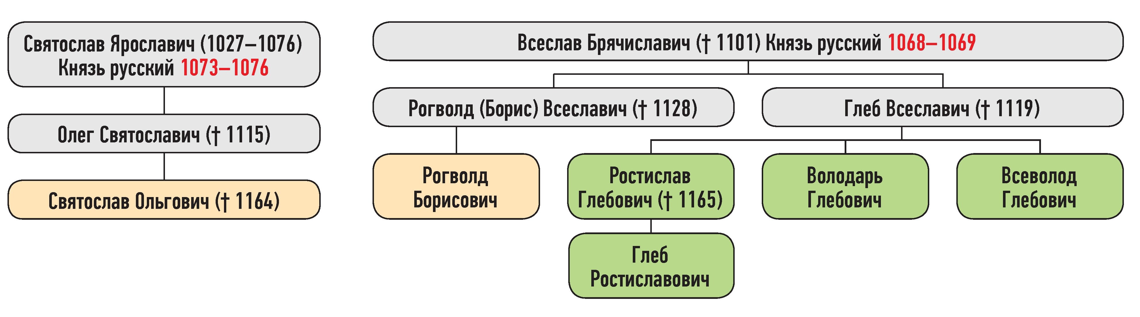 Генеалогическая схема к усобице Рогволода Борисовича и Святослава Ольговича в 1158 г.