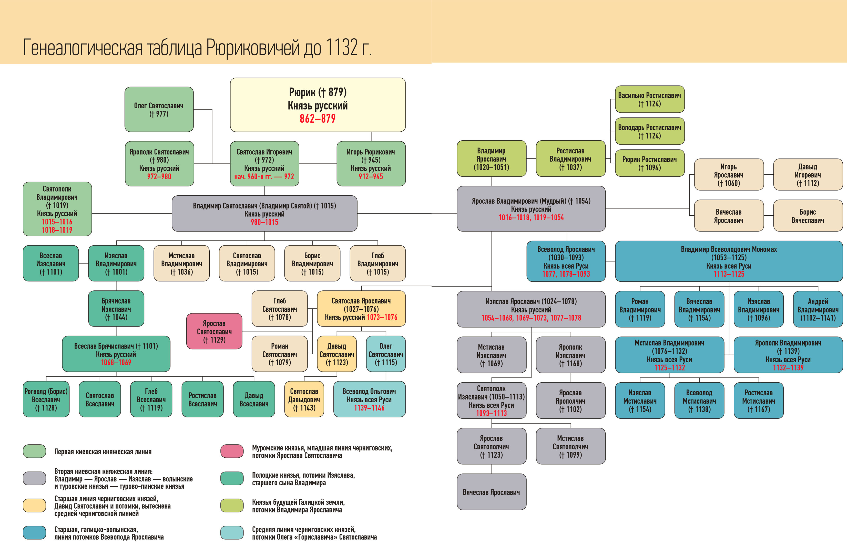 Генеалогическая таблица Рюриковичей до 1132 г.