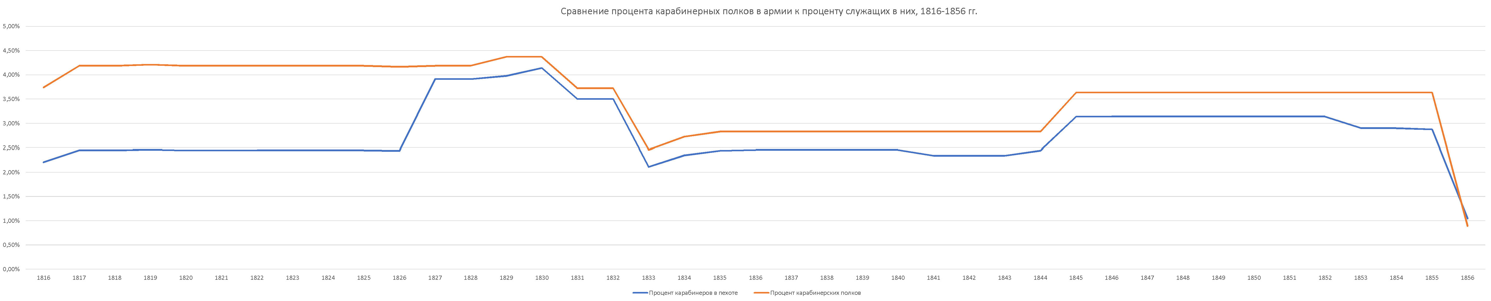 Сравнение процента карабинерных полков в русской армии к проценту служащих в них