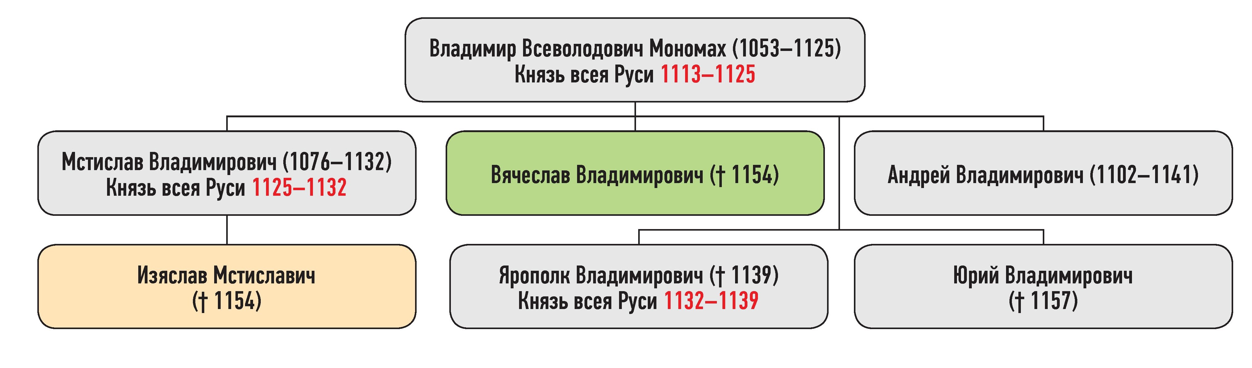 Генеалогическая схема к усобице Вячеслава Владимировича и Изяслава Мстиславича в 1134 г.