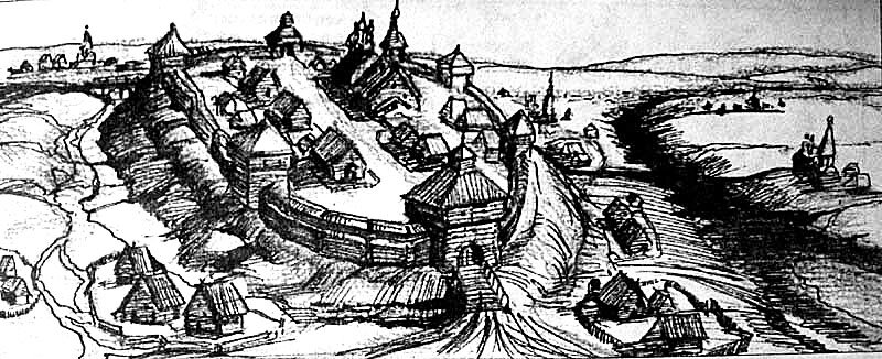 Реконструкция вида города-крепости Михайлова в конце XVI — начале XVII в.