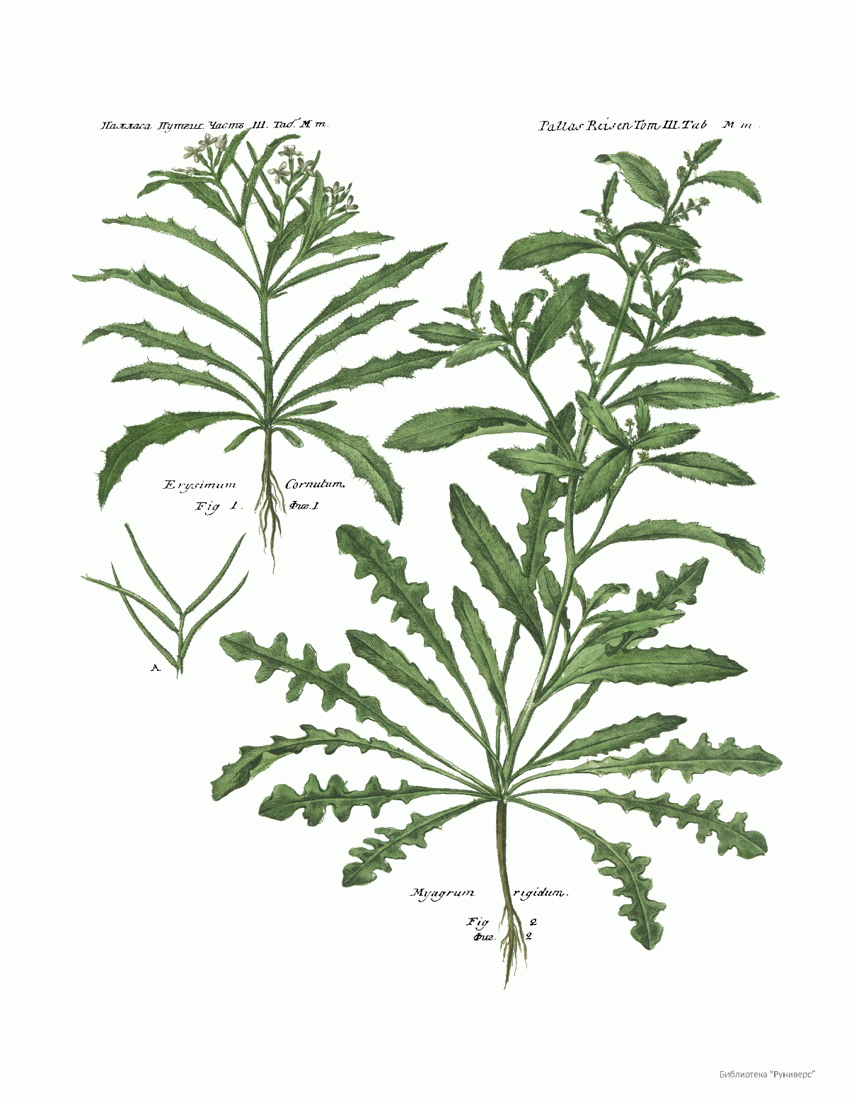 Том III. Таб.Mm. Erysimum Cornutum. Myagrum rigidum.