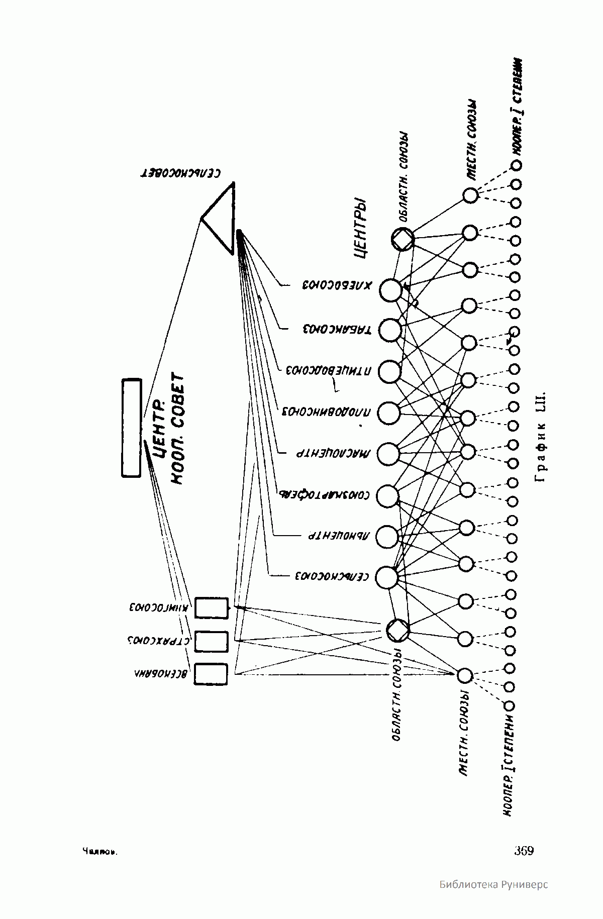 График LII. Система кооперативных центров, опирающихся на сеть местных универсальных союзов и свои специальные системы.