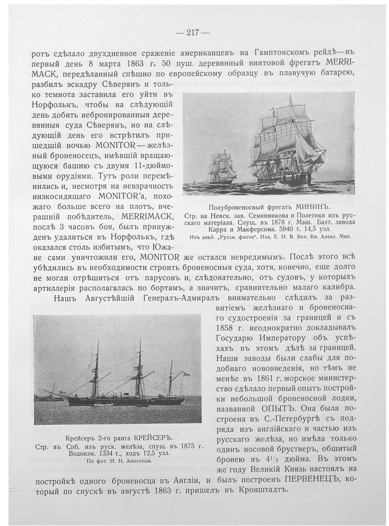 Полуброненосный фрегат МИНИН. Спущен в 1878 г.