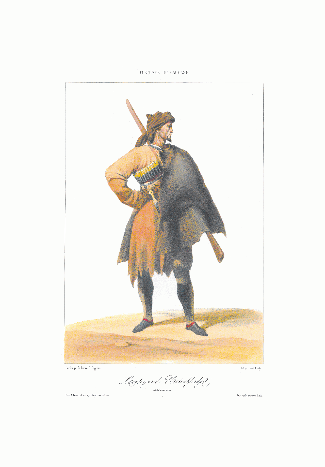 Шесть первых выпусков альбома «Костюмы Кавказа» из серии «Сцены, пейзажи, нравы и костюмы Кавказа» – всего 36 литографий, выполненных на основе живописных и графических работ с натуры князя Григория Гагарина.