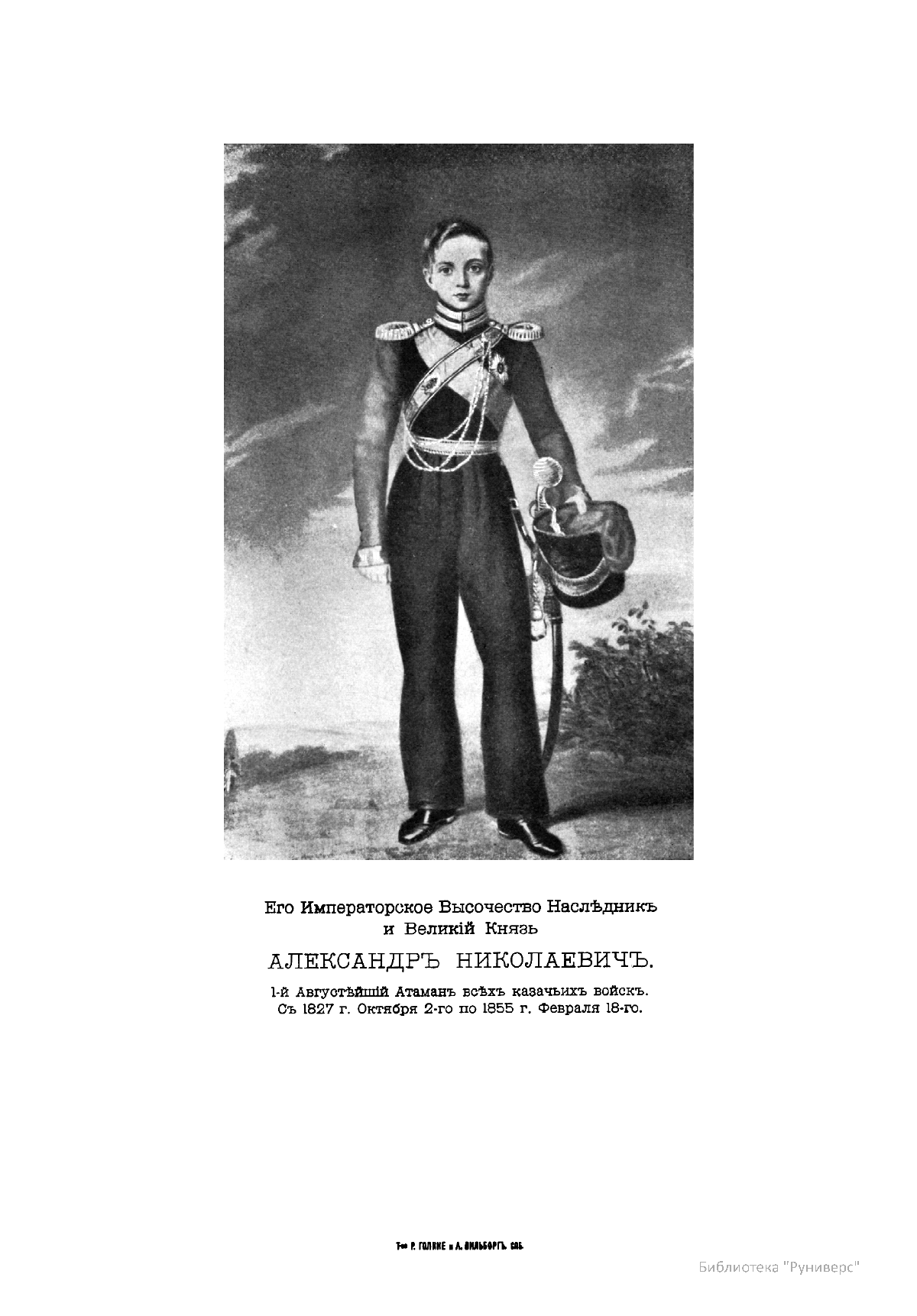Его Императорское Высочество Наследник и Великий Князь Александр Николаевич. 1-ый Августейший Атаман всех казачьих войск. С 1827 г. Октября 2-го по 1855 г. Февраля 18-го.