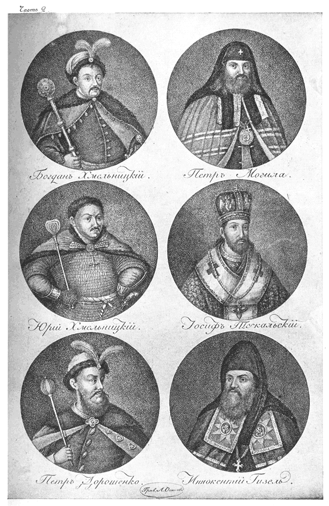 Портреты: Богдан Хмельницкий, Петр Могила, Юрий Хмельницкий, Иосиф Тоскальский, Петр Дорошенко, Иннокентий Гизель