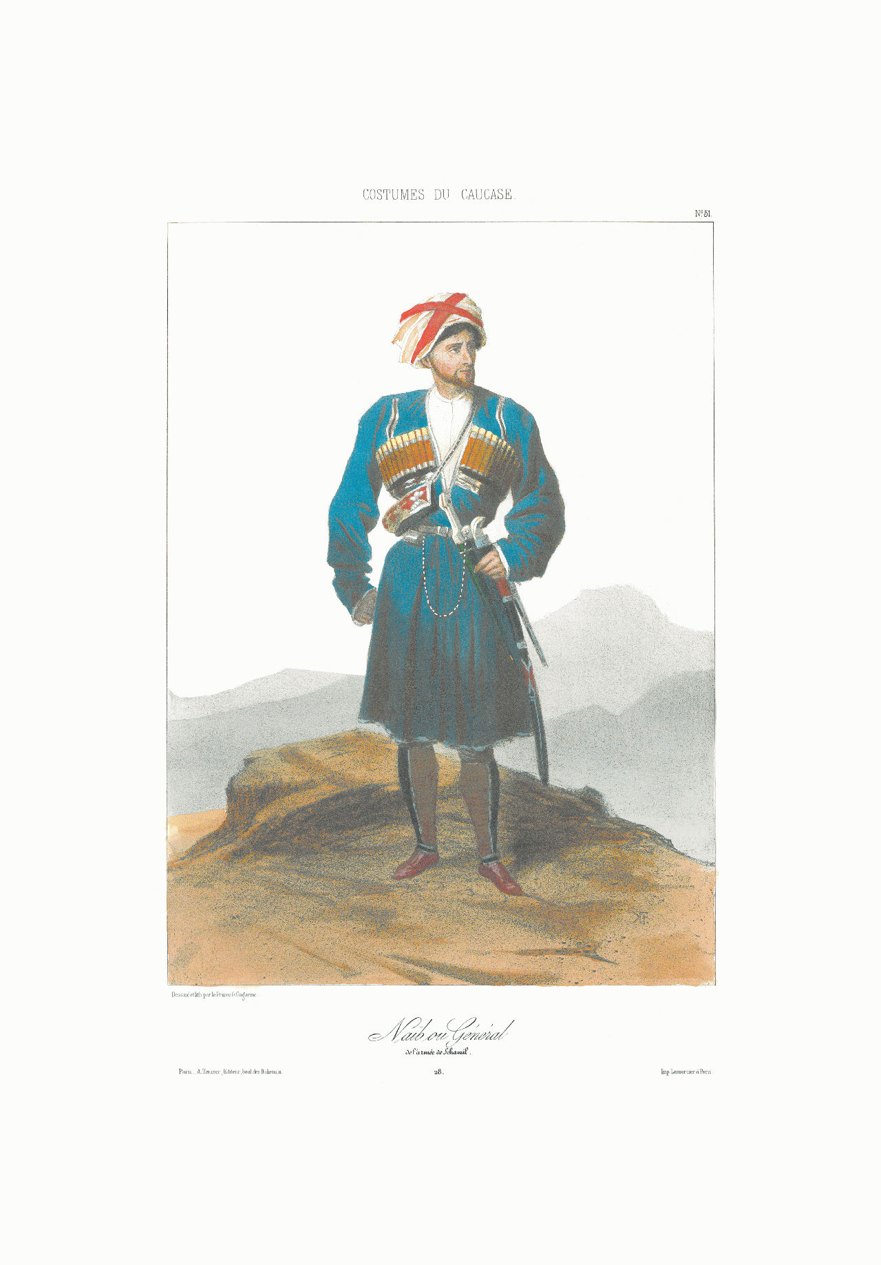 Шесть первых выпусков альбома «Костюмы Кавказа» из серии «Сцены, пейзажи, нравы и костюмы Кавказа» – всего 36 литографий, выполненных на основе живописных и графических работ с натуры князя Григория Гагарина.