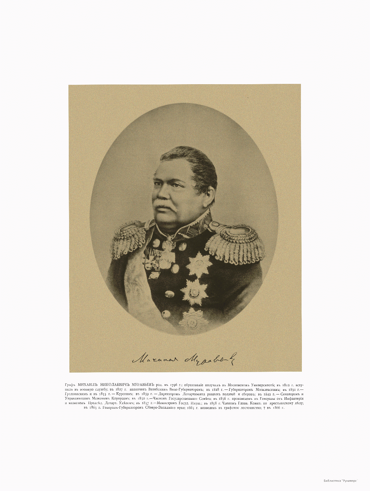 Генерал Губернатор Северо-Западного края Граф Михаил Николаевич Муравьев, 1796-1866.