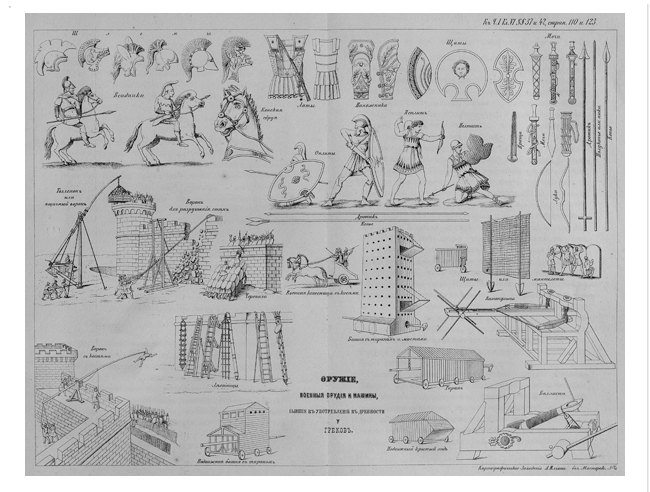 Оружие, военные орудия и машины, бывшие в употреблении в древности у греков.