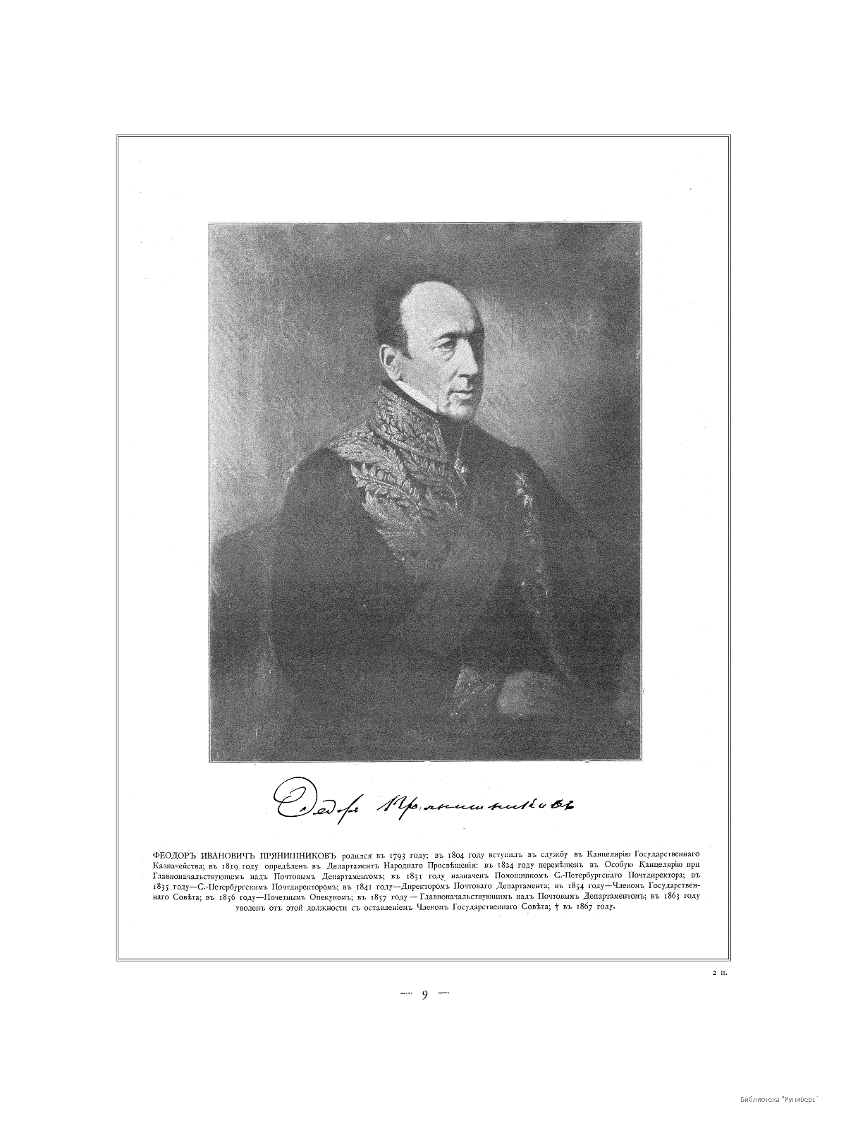Федор Иванович Прянишников (1793-1867), с 1857 - Главноначальствующий над Почтовым Ведомством.