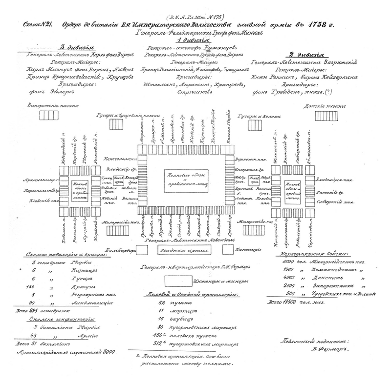 Схема №21. Ордер де баталии Ее Императорского Величества главной армии в 1738г.