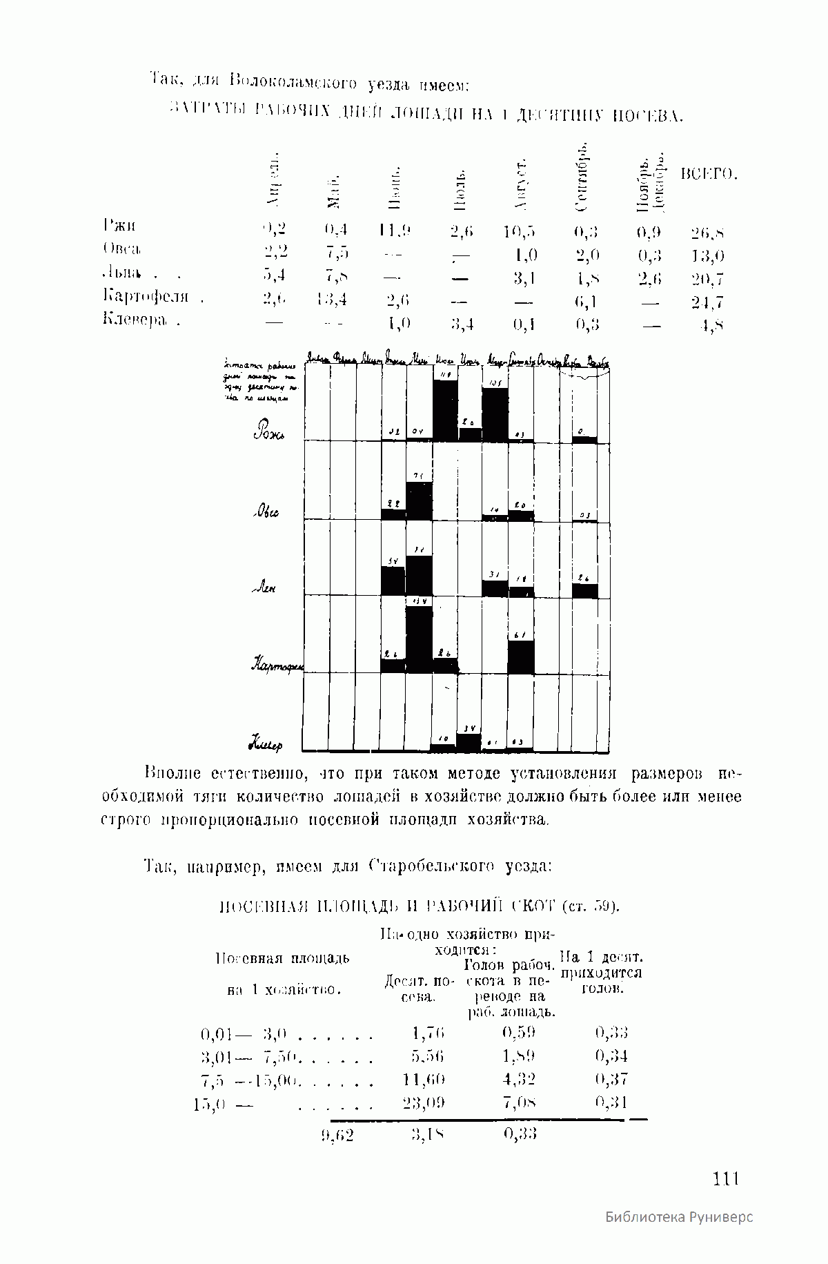 Диаграмма затраты рабочих дней лошади на одну десятину посева по месяцам.