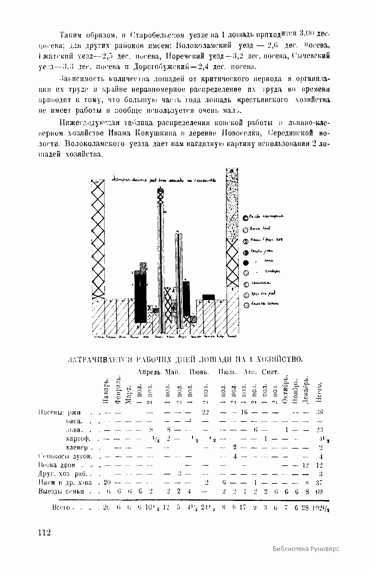 Диаграмма затраты рабочих дней лошади на 1 хозяйство.