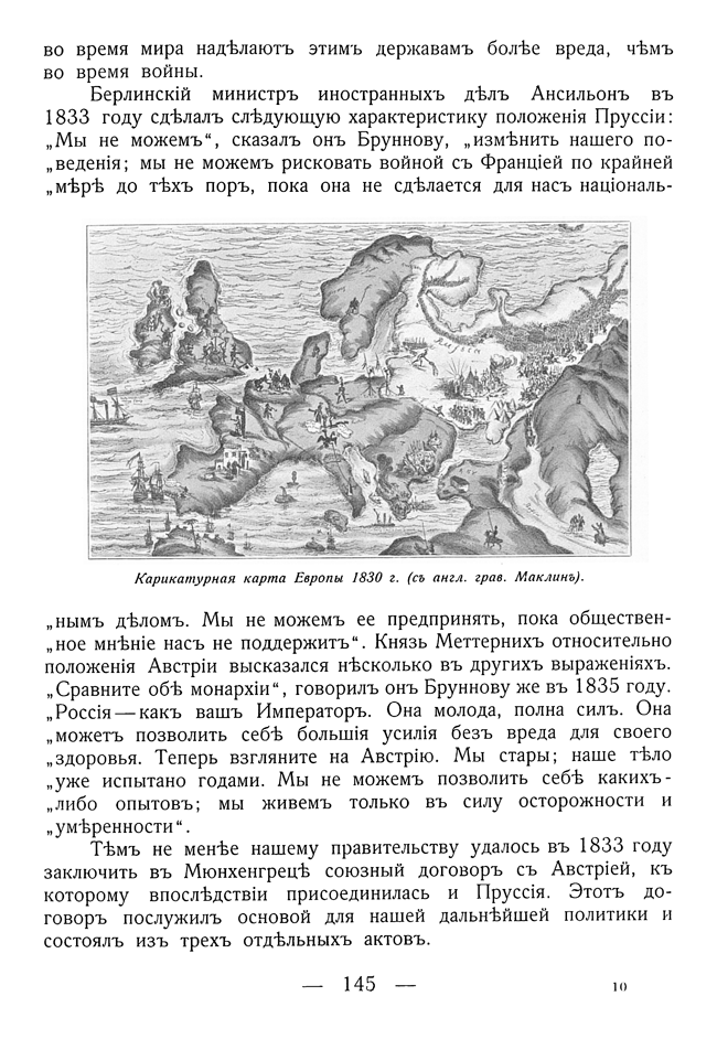 Карикатурная карта Европы 1830 года.