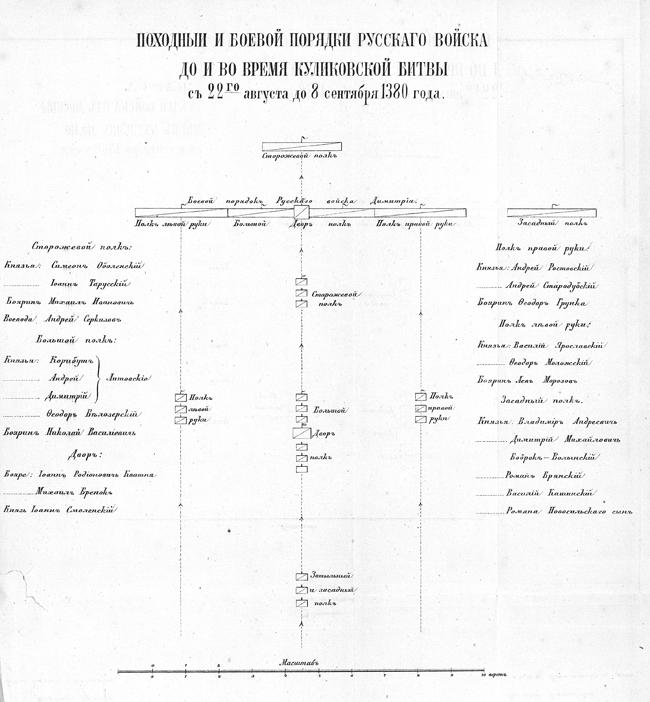 Походныи и боевой порядки русского войска до и во время Куликовской битвы с 22-го августа до 8 сентября 1380 года.
