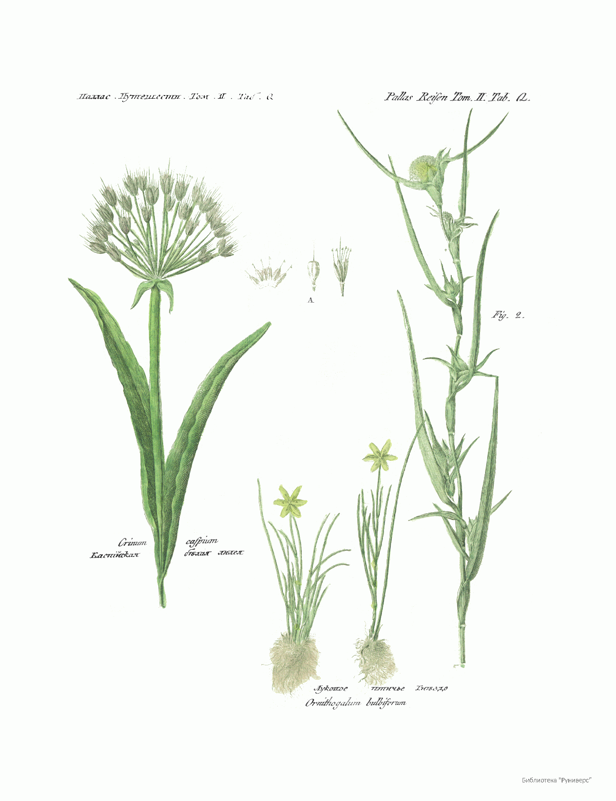 Том II. Таб.Q. Каспийская белая лилия. Луковое птичье гнездо.