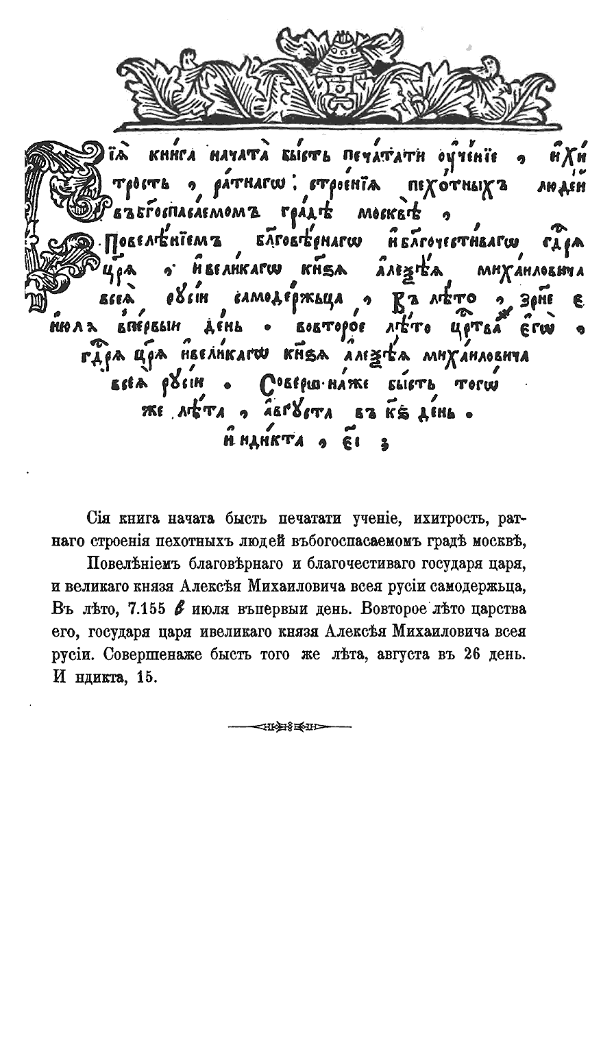 Последняя страница первого московского издания воинского устава 1647 года