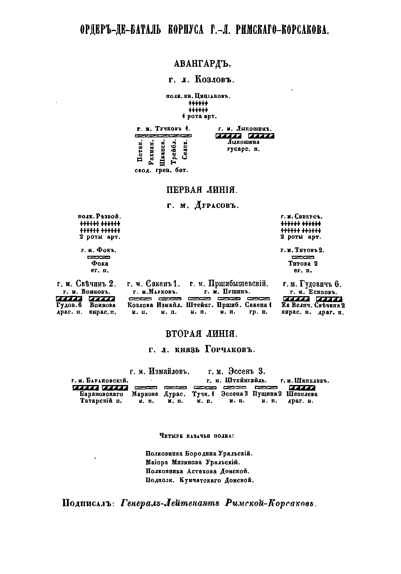 Схема боевого порядка корпуса г.-л. Римского-Корсакова.