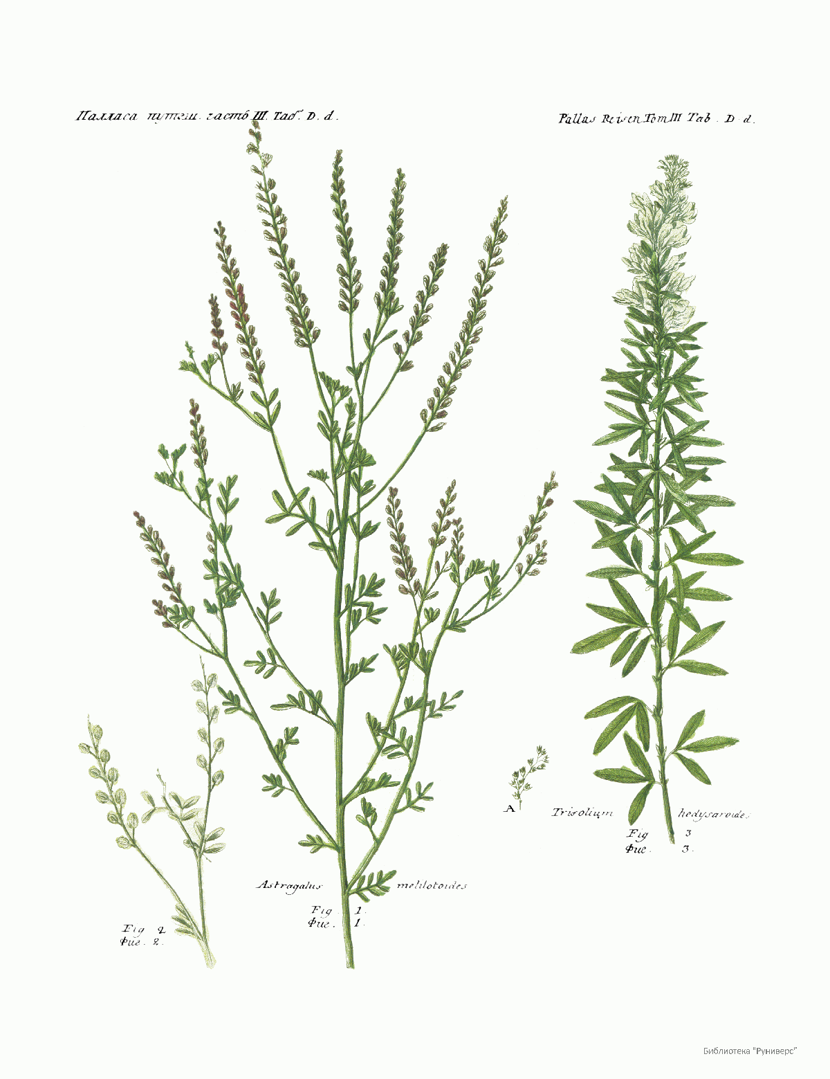 Том III. Таб.Dd. Astragalus melilotoides. Trisolium hedysaroide.