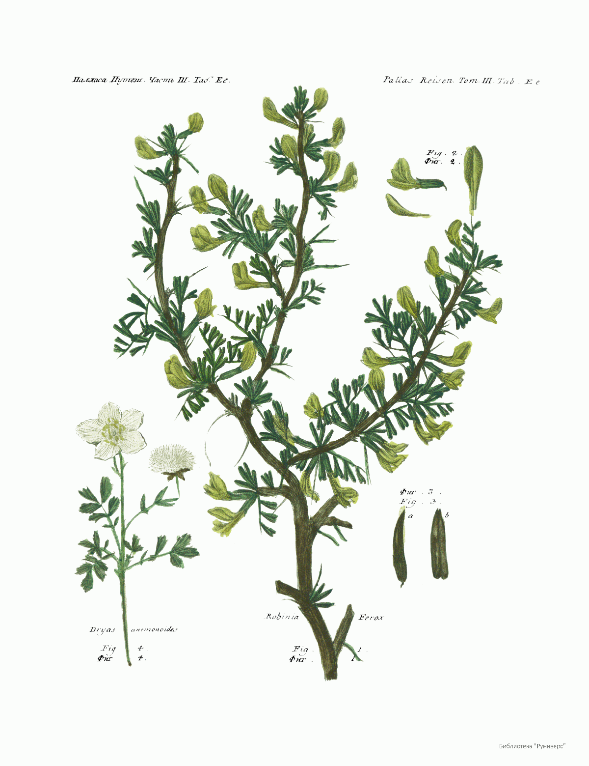 Том III. Таб.Ee. Robinia Ferox. Dryas anemonoides.