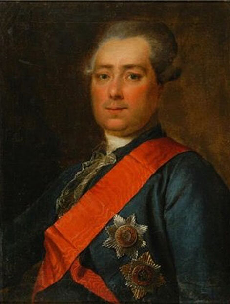 Поясное изображение мужчины средних лет, поворот фигуры – три четверти влево, взгляд – на зрителя. Одет в тёмно-синий кафтан с кружевным жабо. Слева на груди – звёзды орденов Александра Невского и Св. Владимира. Под кафтаном через правое плечо – лента ордена Св. Владимира. Через левое плечо – лента ордена А. Невского. Портрет иконографически близок работе Д.Г. Левицкого из серии портретов кавалеров ордена Св. Владимира