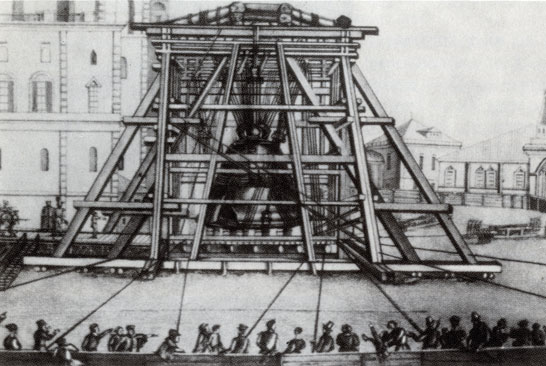Подъем Царь-колокола в 1836 г. Гравюра 19 века