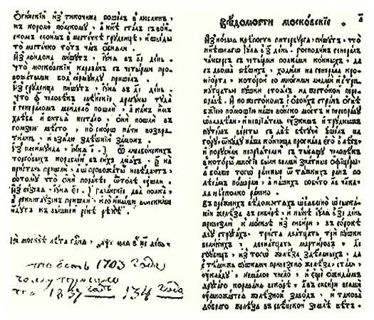«Ведомости», первая русская газета. 1703 год