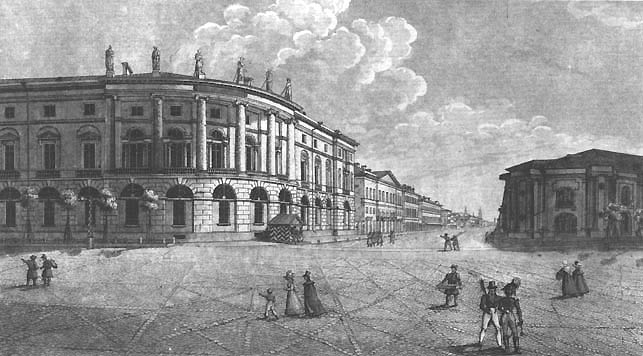 Невский проспект и Садовая улица в Санкт-Петербурге, 1800-е годы. Российская национальная библиотека.