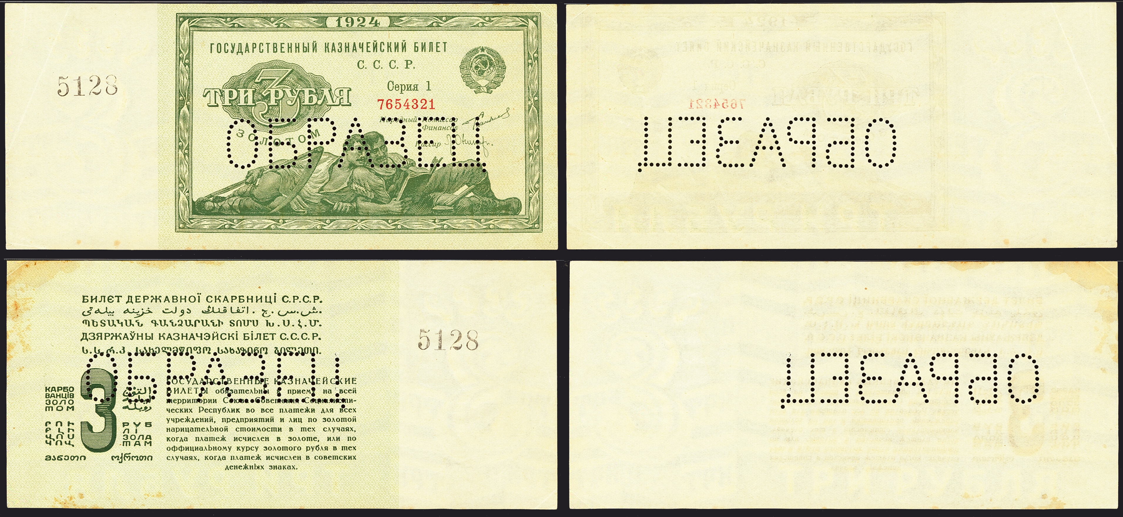 Первые советские 3 рубля 1924 г.