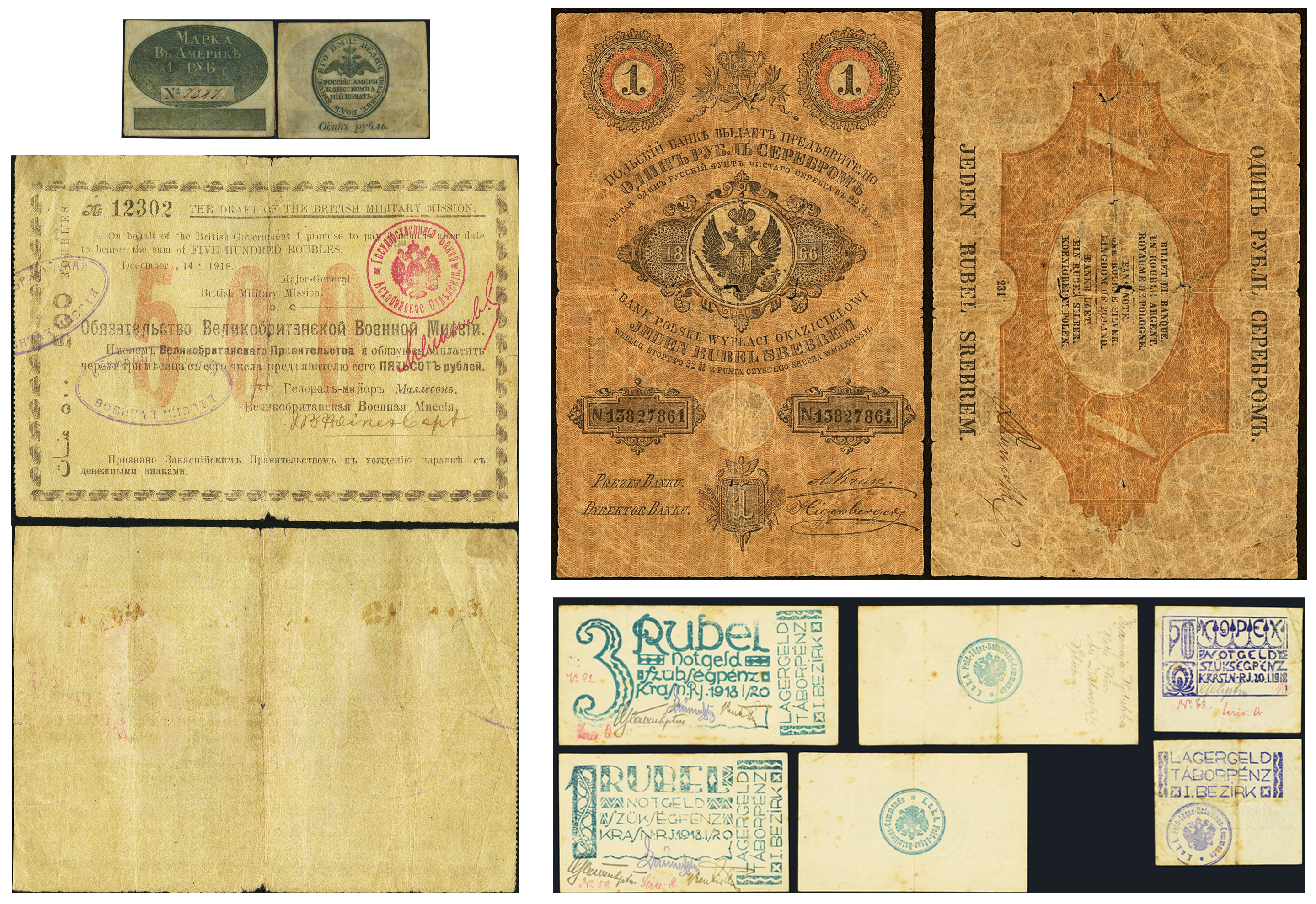 1916 г. Лагерь для австро-венгерских военнопленных Красная Речка, Хабаровск, 50 коп., 1, 3 руб., $5,875 тыс., 2014 г., Heritage.